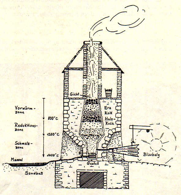 40 % des Erzgewichtes an Masseleisen. Die benötigte Holzkohle lieferten anfänglich die Gersbacher Wälder. Nach dem Schwinden des Waldbestandes wurde die Holzkohle aus dem Vorderösterreichischen Gebiet bezogen, oft im Austausch gegen Erz. Der Schmelzofen verbrauchte täglich ca. 2 to Holzkohle.