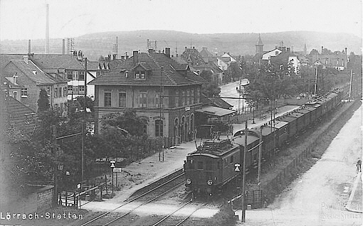 Eine weitere Ansichtskarte aus der Zeit vor dem 1. Weltkrieg zeigt die Lok mit einem aus 13 Wagen bestehenden Personenzug (eine für die damalige Zeit an Wochenenden nicht ungewöhnliche Zusammenstellung) beim Bahnhof Lörrach-Stetten auf die Abfahrt nach Basel wartend.