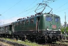 Der vorletzte Versuch der DB, für die Wiesentalbahn ein "modernes, attraktives Nahverkehrsangebot zur Verfügung zu stellen: Lok-bespannte Wendezüge im Taktverkehr. Der Haken (wie immer): sowohl die Loks der Baureihe E 41 als auch die als "Silberlinge" (wegen ihrer Hülle aus poliertem Edelstahl) bekannten Waggons stammten aus den 50-er und 60-er Jahren! Immerhin - besser als nichts und eine gewisse Attraktivitätssteigerung konnte man konstatieren: weniger der angeschmuddelten Wagen wegen, sondern vor allem durch die trotz des hohen Alters äußerst zuverlässigen "Knallfrösche" (so benannt wegen ihres überlauten Schaltwerkes - zu hören insbesondere beim Anfahren).