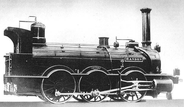 Bauform mit der offenen "Cab" als Führerstand. Das Bild zeigt die Lok der Gattung III "Eberbach" (dies könnte die Type des Lörracher Fotos sein) mit 2 gekuppelten Treib- und 2 Laufachsen, in 41 Exemplaren gebaut 1861 - 65 von der Maschinenbaugesellschaft Karlsruhe. Die Loks galten über viele Jahre als das Rückgrat für Personen- und Schnellzugleistungen auf dem gesamten badischen Schienennetz.